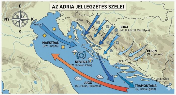 Adria jellegzetes (főbb) szelei: